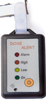 In another low cost variation of Dose Alert, the radiation level is continuously indicated by short audio beeps and 4 LEDS which light up whenever the radiation dose rate exceeds four preset levels of 2 mR/h, 5 mR/h, 50mR/h & 100mR/h. When the highest dose rate level is exceeded, the beep becomes continuous. The Dose Alert beeper is a low cost, compact, pocket / key chain device for radiation warning.